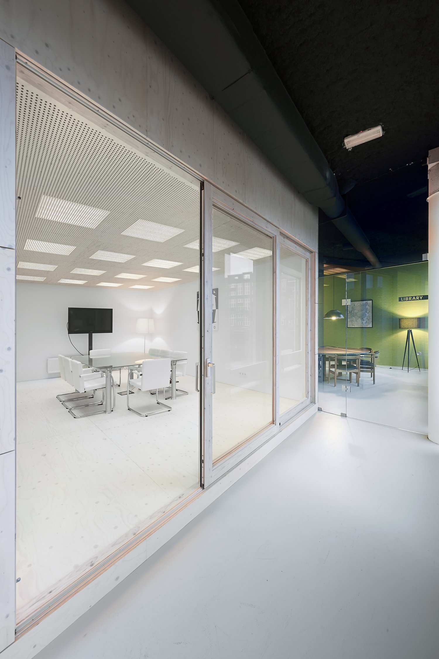 Binnen dit kader zijn weer verschillende deelplekken gemaakt die de interactie tussen werknemers onderling bevorderen. Tegelijkertijd waarborgt de indeling op een subtiele wijze de privacy van informatie en personen.